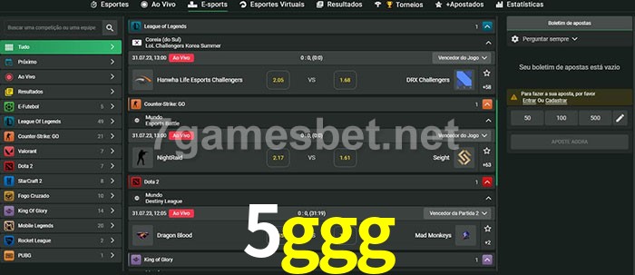 O 5ggg oferece uma grande seleção de opções de apostas em e-sports com probabilidades competitivas